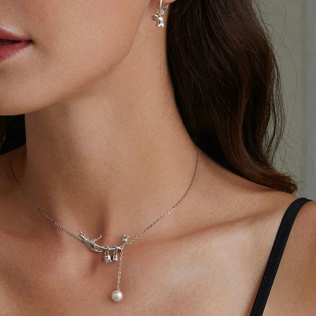 A symphony of serene elegance, The Campanula Bloom Set captures the gentle beauty of nature's design. This exquisite set features both earrings and a necklace, crafted as a harmonious expression of the Plant Flowers trend element. Each piece is made from pure S925 sterling silver, known for its purity and radiant luster. A meticulous electroplating process is used to provide a lasting and brilliant finish.
