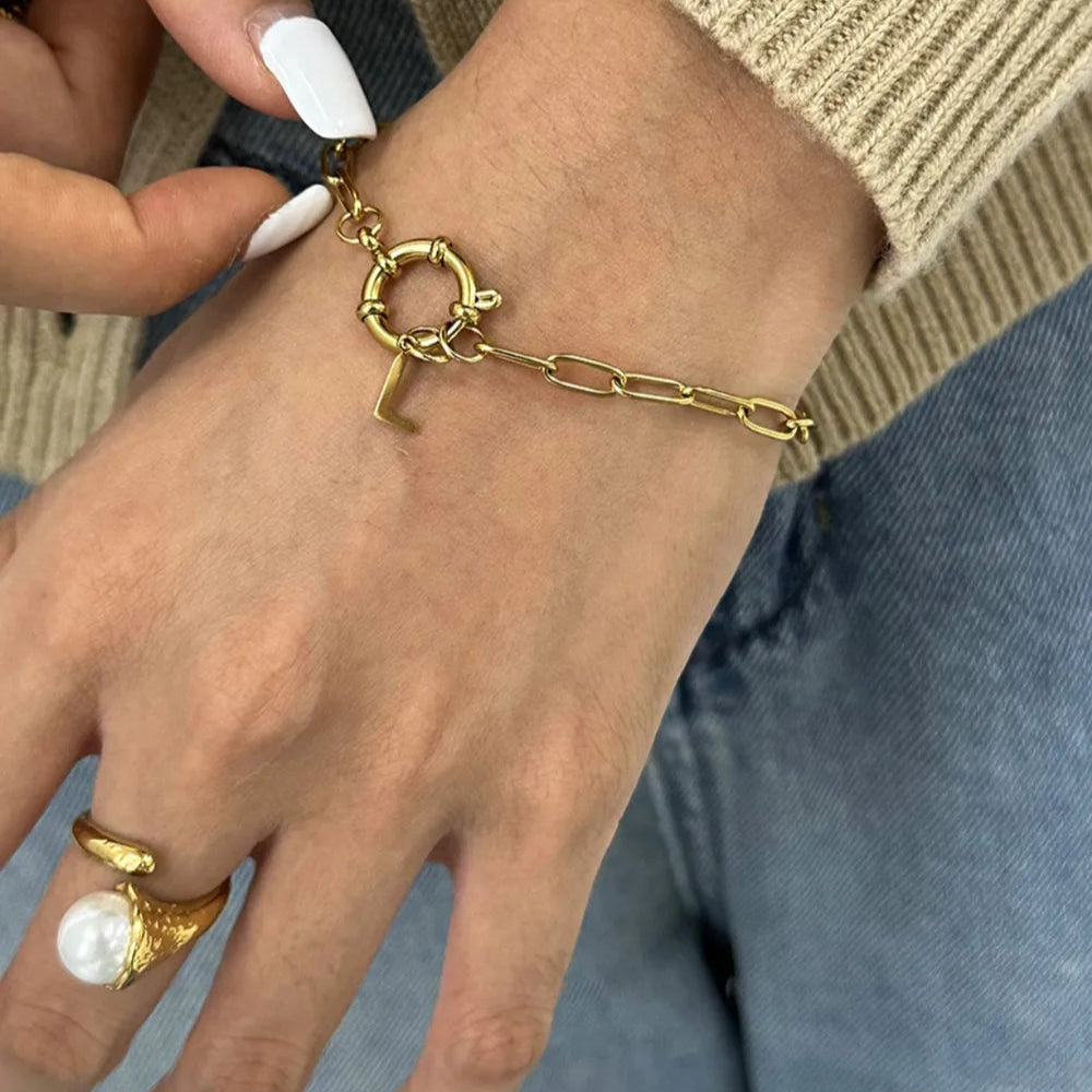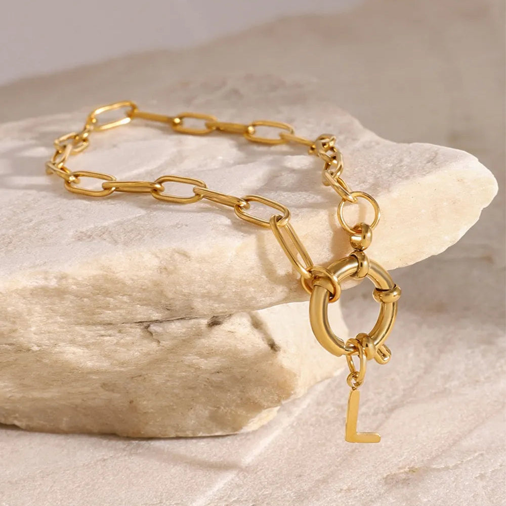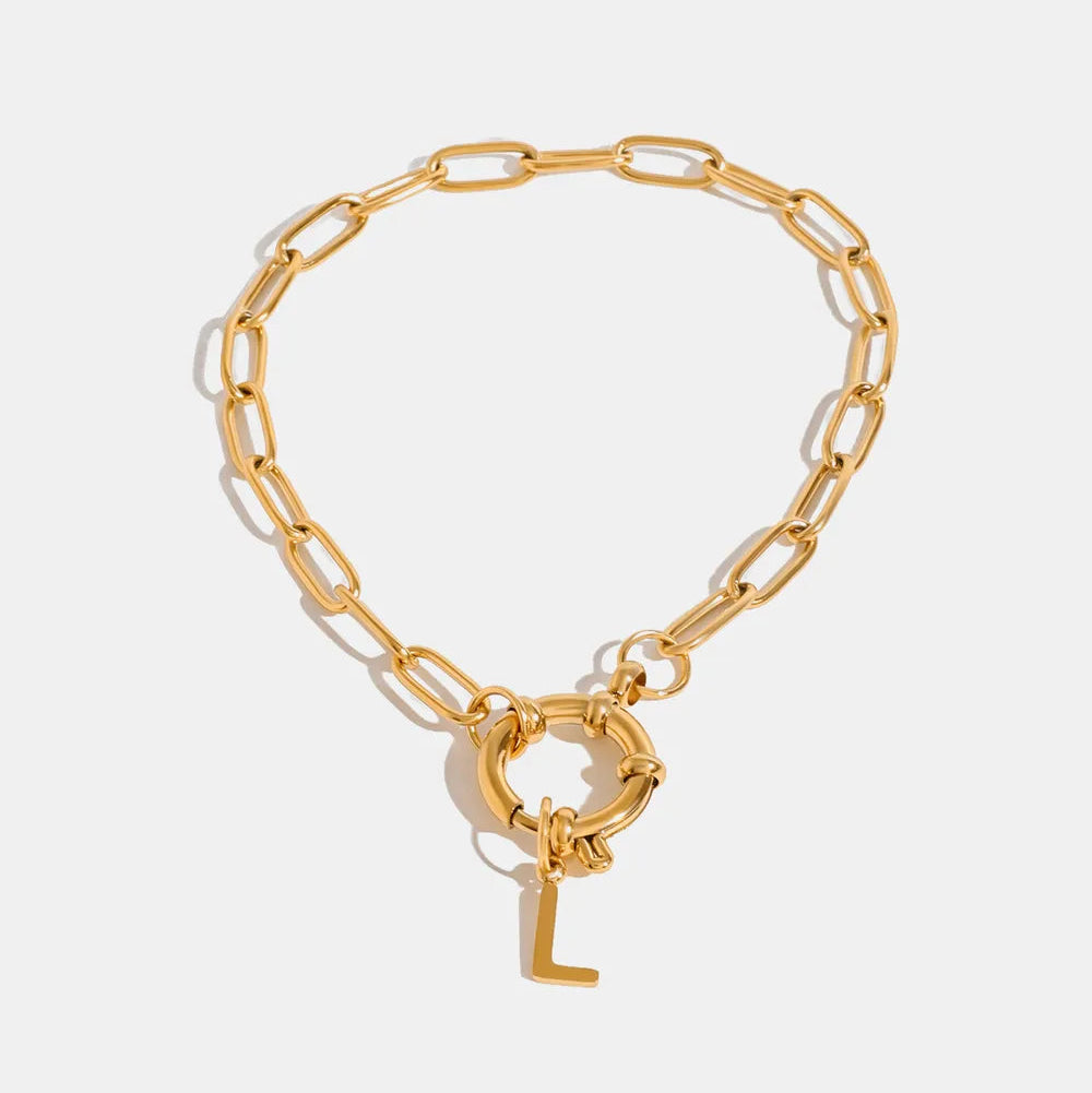 The piece is crafted from durable stainless steel with a brilliant gold-plated finish, combining the strength and longevity of the material with a rich, luxurious sheen. This makes it highly resistant to corrosion and tarnishing, ensuring that its shine will last for years. The unique floral design of the clasp adds a touch of artistic charm, making the necklace a statement piece whether it's worn alone or layered with other necklaces.