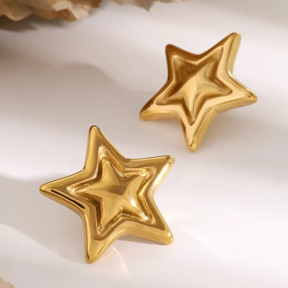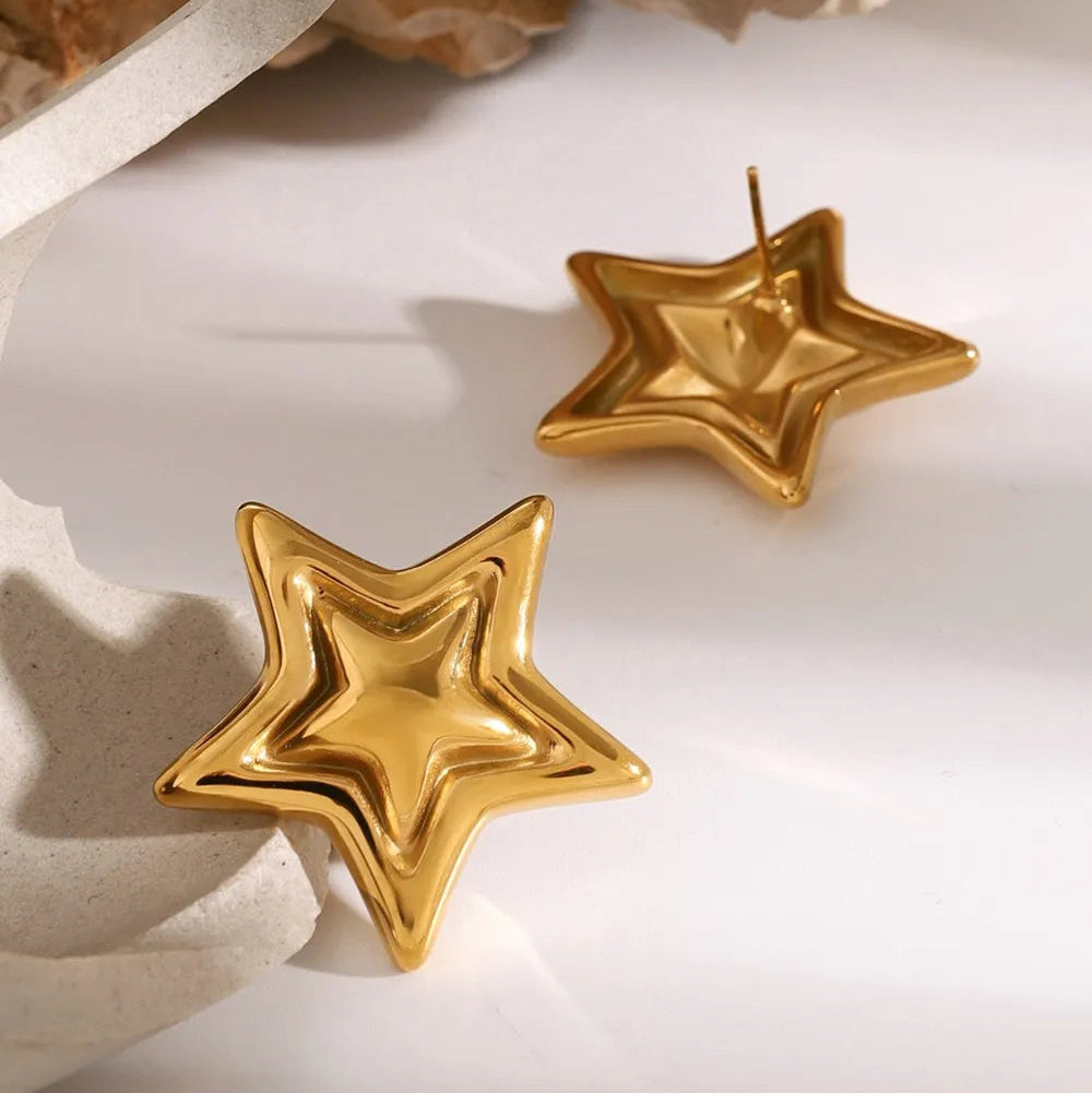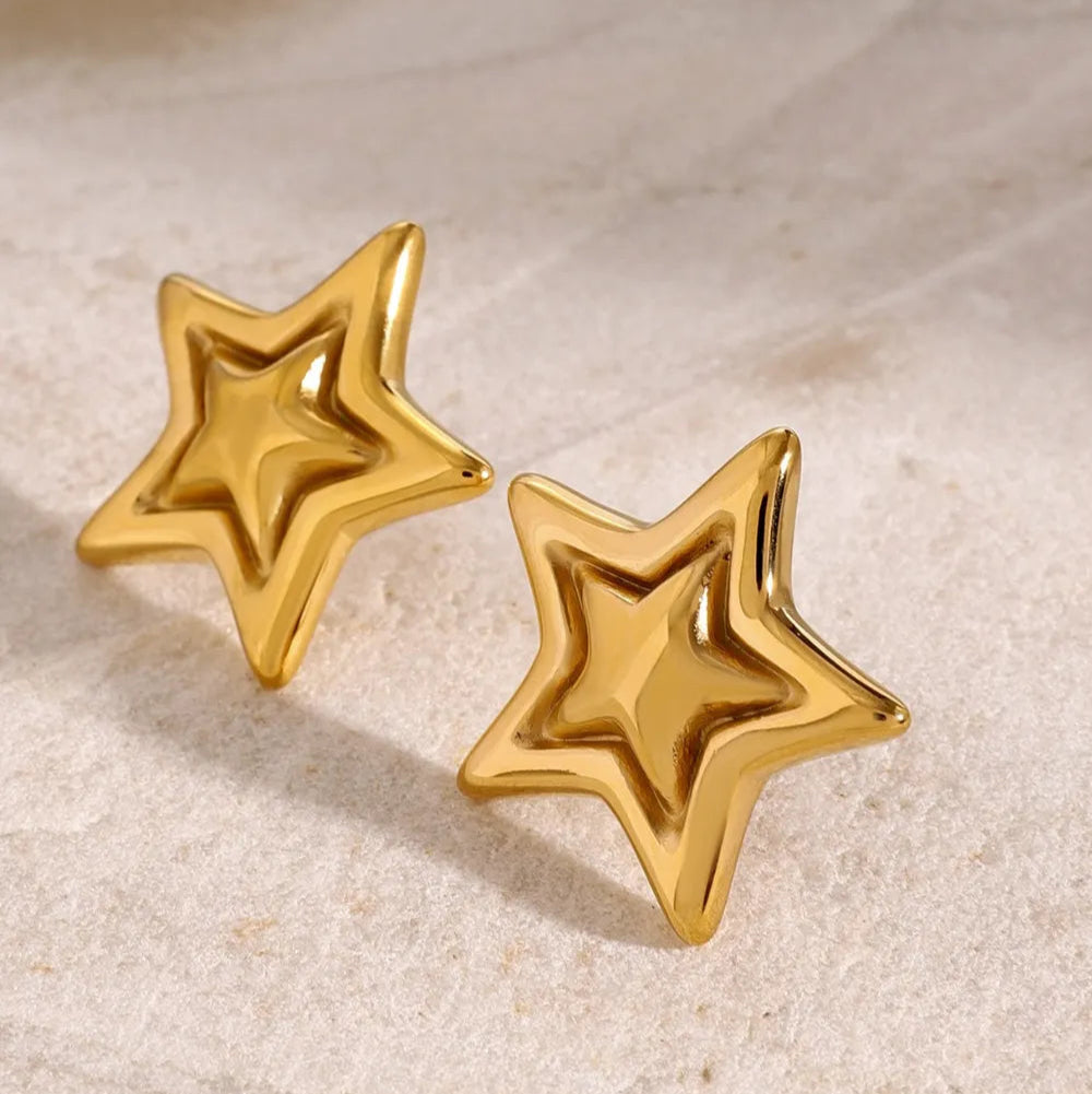 A tribute to celestial elegance, The Nova Star Studs are a striking yet minimal addition to your collection. Crafted from premium Stainless Steel, these earrings feature a bold, dimensional star design. The layered effect creates a subtle sense of depth, with a polished outer layer available in radiant Gold Plated or sleek Silver Plated finishes. This sculptural shape catches the light beautifully, offering a modern take on a classic symbol. Lightweight and comfortable, these studs are perfect for adding a touch of sophisticated charm to your everyday look, proving that true style is always within reach.